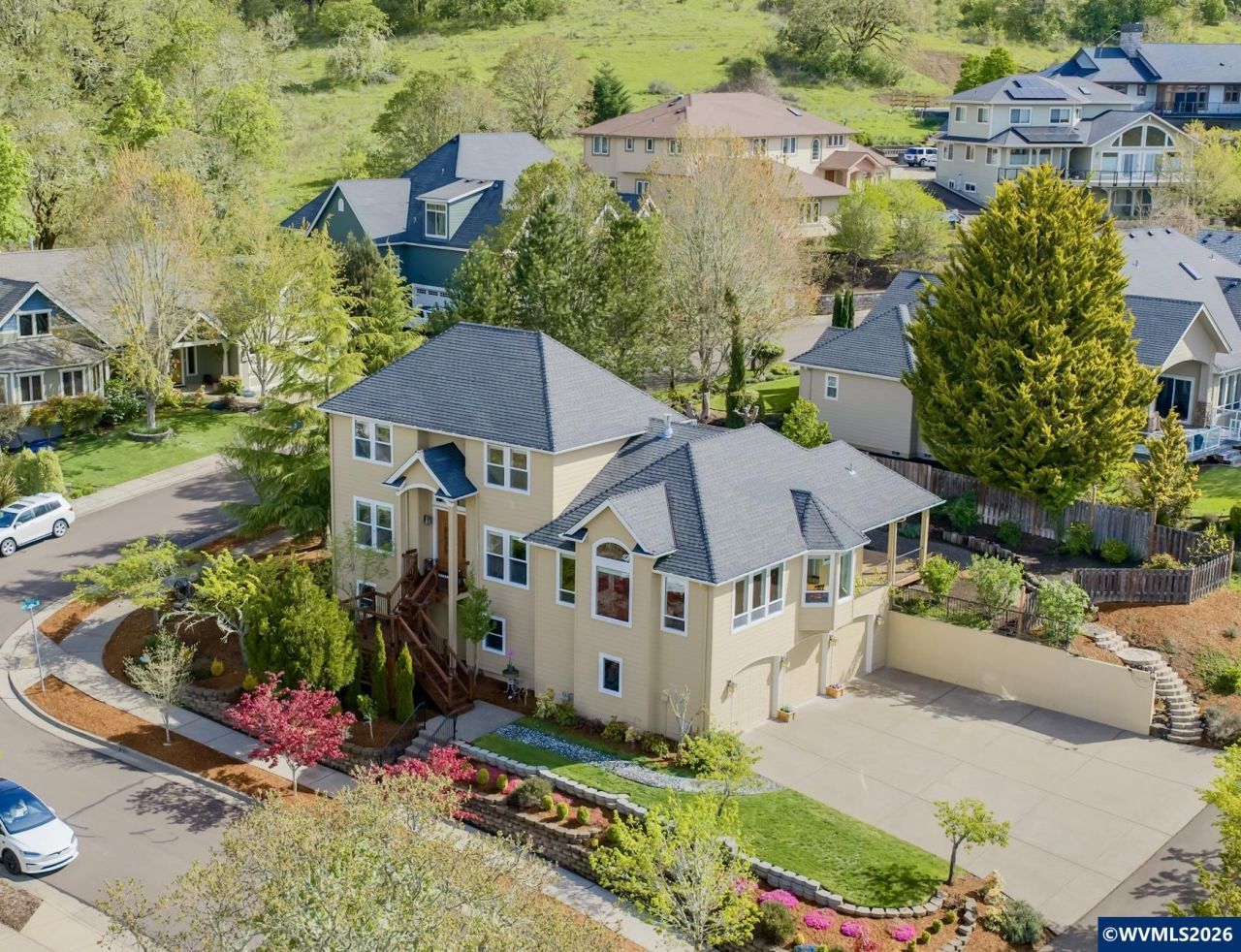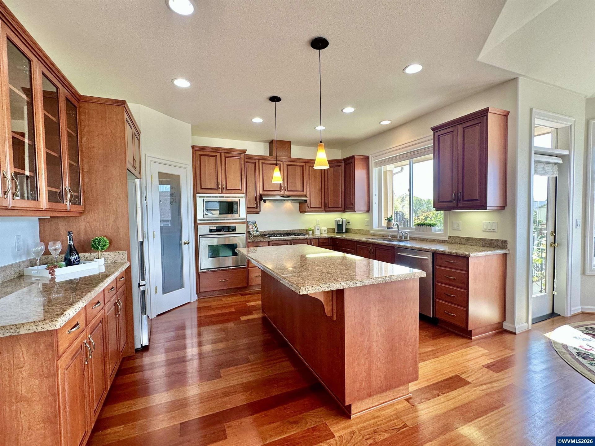 Elegant home on a spacious corner lot with wonderful views in sought-after Timberhill neighborhood. Light-filled family room is the heart of the home, with tray ceilings, gas fireplace, built-in hutch, & Brazilian wood floors, ideal for everyday living and entertaining. Gourmet kitchen showcases rich cherry cabinetry and granite countertops. Main-level primary suite with heated floor in bathroom and access to private deck and backyard.Be sure to explore the 545 sqft shop for hobbies or extra storage.